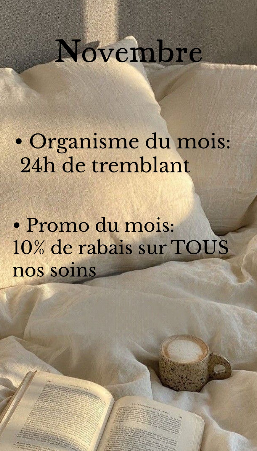 • Pour chaque soin réservé durant ce mois, 3 $ seront reversés à l’organisme sélectionné. 💆♀️
